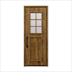 まるでカフェの入口のような木目調のかわいい玄関ドア。