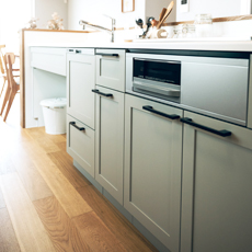 木の風合いが可愛い、レトロなイメージのキッチンで毎日の料理も楽しく。